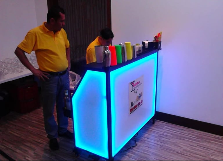 Lleva la experiencia de una barra profesional a cualquier lugar con nuestras exclusivas barras móviles tipo LED. Ideales para eventos sociales, empresariales o celebraciones especiales, nuestras barras ofrecen un estilo moderno, elegante y totalmente funcional, atendidas por bartenders expertos que garantizan una experiencia única para tus invitados